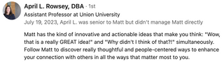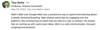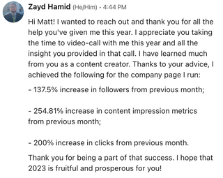 Matt Parkin is a LinkedIn Top Marketing Voice and Personal Branding Coach, helping entrepreneurs from pre-revenue to $100M+ ARR grow their personal brands. He’s generated millions of organic content impressions for himself and his clients, attracting inbound clients, job offers, partners, job seekers, and more. He’s been invited to share personal branding strategies with schools, conferences and industry associations, and his thought leadership has been featured in publications like LinkedIn News and HR.COM.